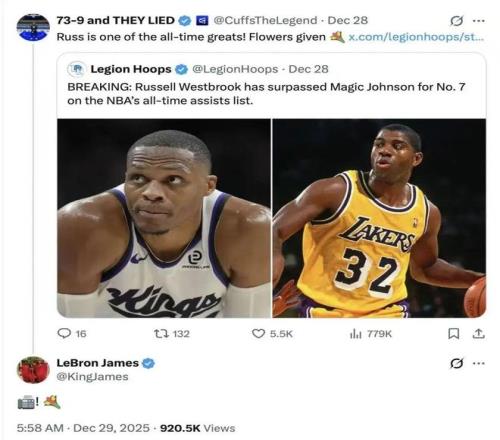 赛前老詹还转发“威少是历史最佳之一”