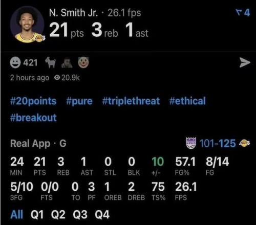 得到24分3篮板5助攻后,下班!正负值+20!