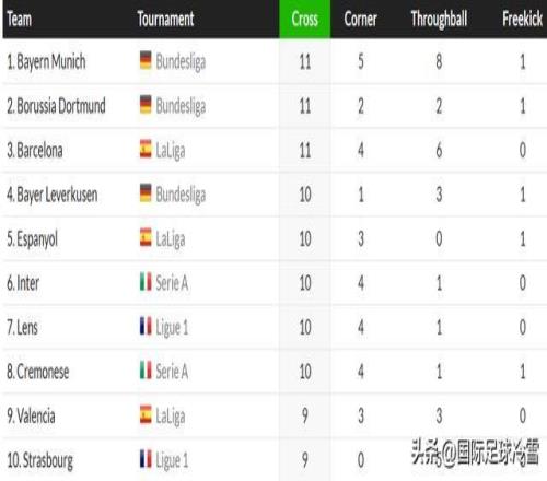 多特蒙德通过角球、任意球形成了71次攻门,这方面排名五大联赛第52位,还是中游水平。
