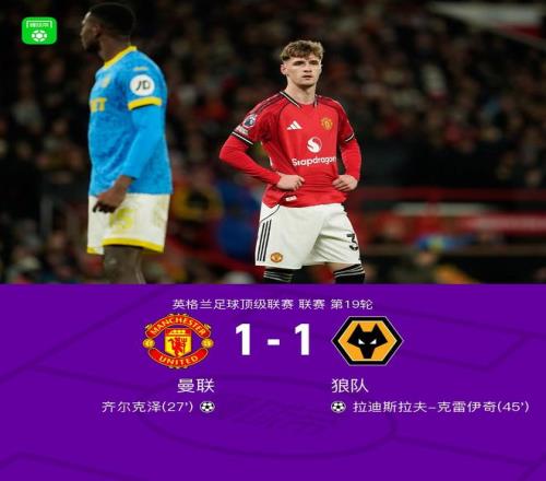 北京时间12月31日,英格兰足球超级联赛第19轮,曼联坐镇主场迎战狼队。上半场,艾登-海文抢断后齐尔克泽打门折射入网,谢什科头球攻门中柱,齐尔克泽乌龙助攻克雷伊奇头球破门扳平;下半场,莫斯克拉头球解围差点乌龙,克雷伊奇捅射被拉门斯扑救,谢什科打门被扑后多古补射破门被判越位进球无效。最终以1比1握手言和。