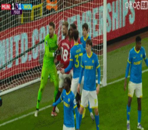 第45分钟,齐尔克泽头球乌龙助攻,克雷伊奇头球破门扳平!曼联1-1狼队